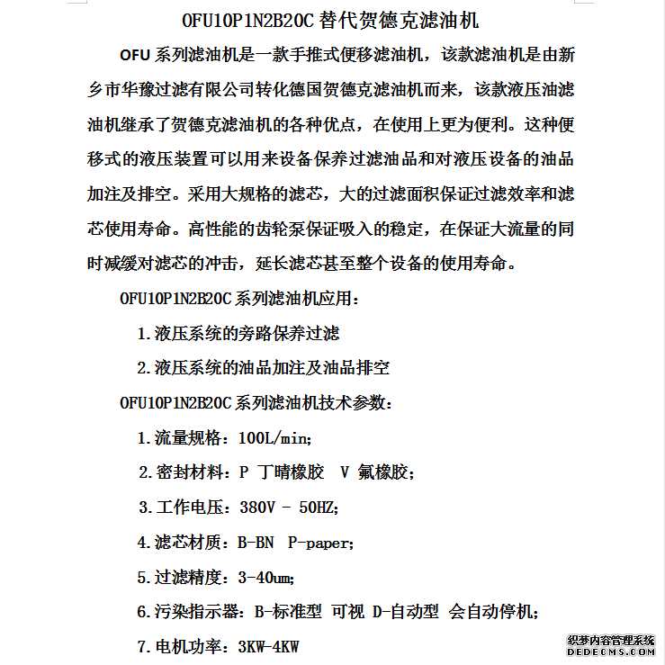 OFU10P1N2B20C替代賀德克濾油機(jī)