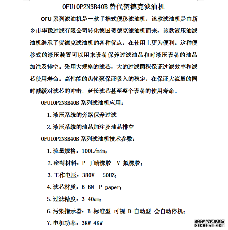 OFU10P2N3B40B賀德克移動(dòng)濾油機(jī)