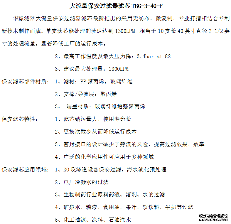 大流量保安過濾器濾芯TBG-3-40-P