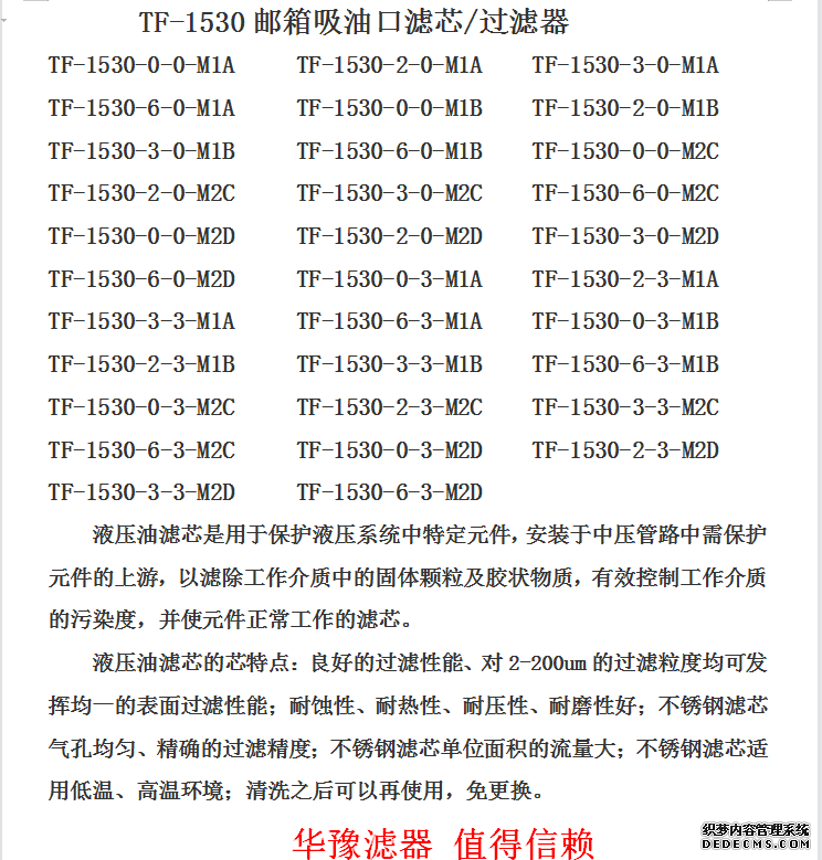 TF-1530 吸油口濾芯/過(guò)濾器