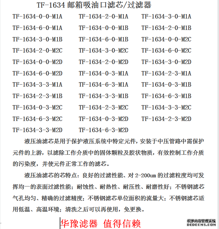 TF-1634郵箱吸油口濾芯/過濾器
